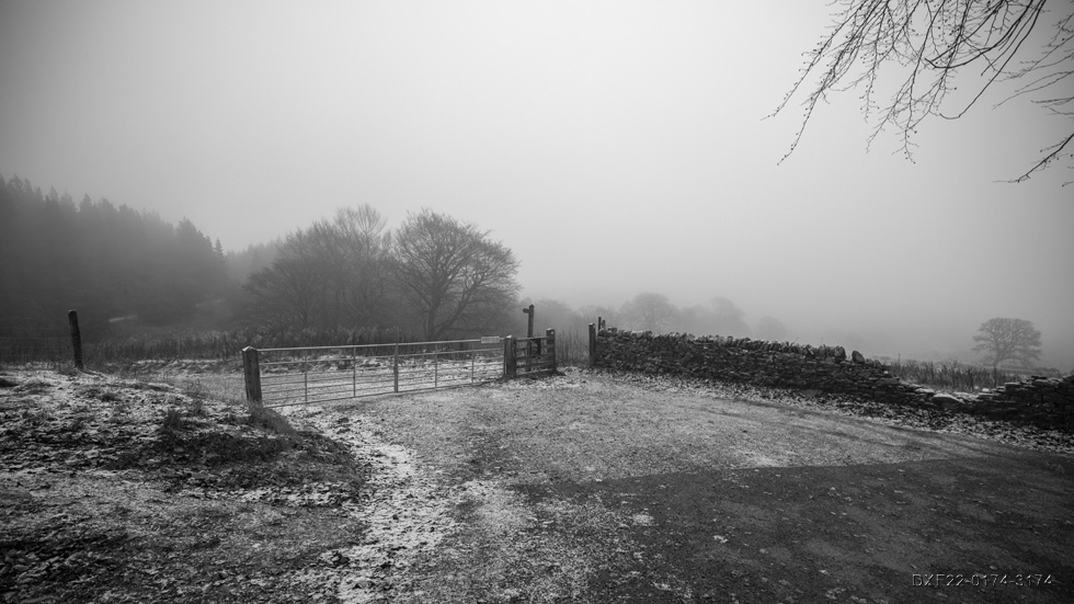 Entrance to a misty Goyt Forest (B&W): December 9th. 2022 |