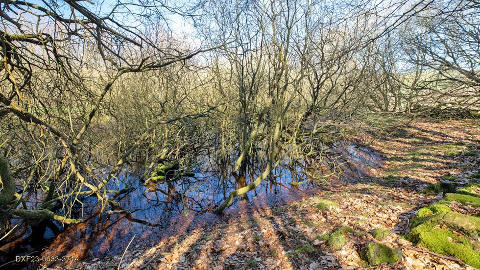 This pond is old and was associated with the old railway. Barely visible from Goyt Lane and indeed the usual OS map (hence the map below), it is largely overgrown and close up resembles the everglades with the mass of timber and exposed roots. Largely fenced (dilapidated) and includes warning notices regarding unsafe ground, which is true but is also true of other areas in the Goyt not so fenced or signposted. Visitors advised to keep firmly on the margins and completely avoid what appears to be a grassed area to one side of the pond. At the time of writing (April 2023) I have not spent much time here in season but will be doing so this year. Very reminiscent of Pond Number 5 but there is plenty of water on the hidden side of the pond. Not been here for some years and need to make up for it. Directly opposite the small car parking scrape on Goyt Lane. |
