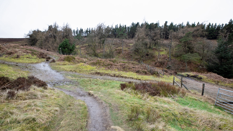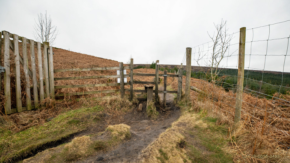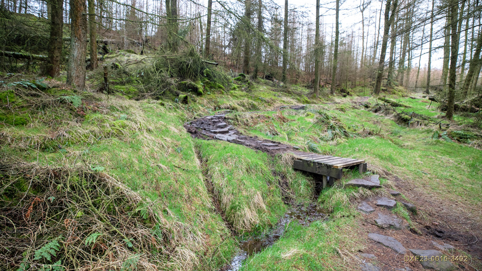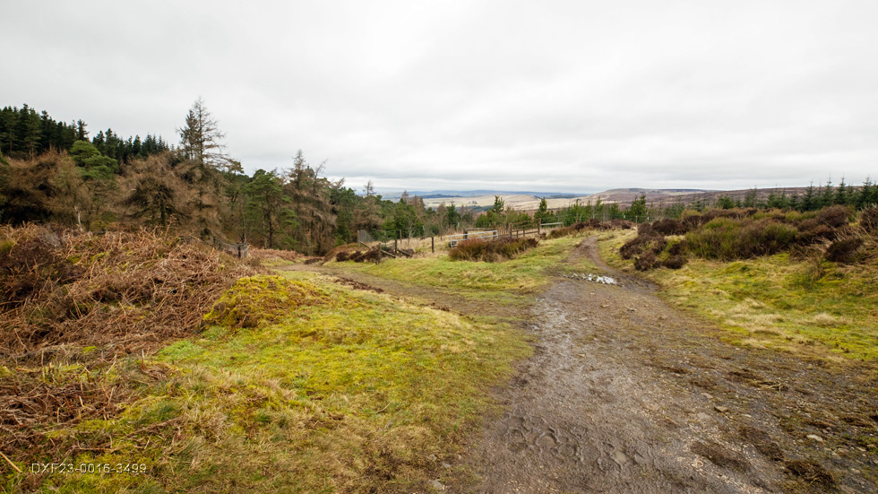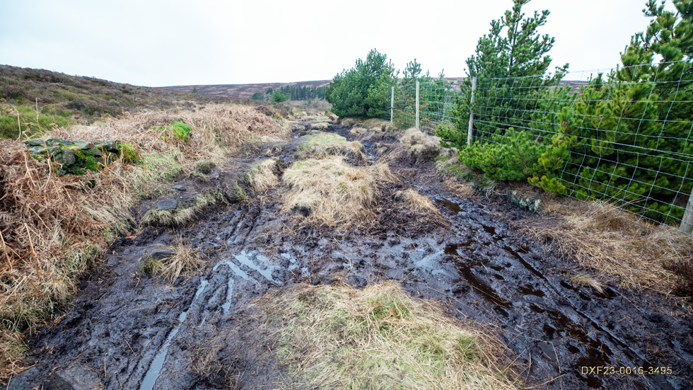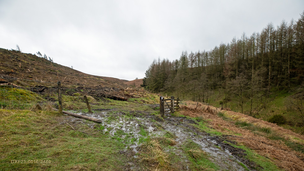 On the muddy climb but navigable as the fence is down following forestry works: February 20th. 2023
