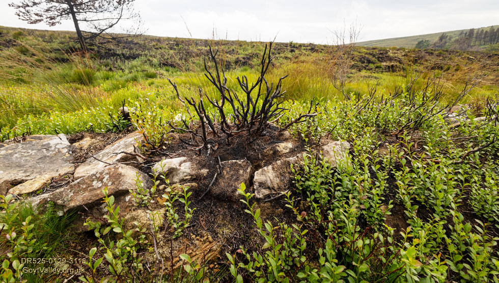 Eyes left showing charred heather but also showing recovery: October 2nd. 2025 |