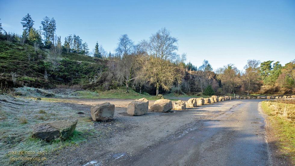For the record, what this website refers to as Car Park 8 has now been altered by the introduction of boulders in January 2024. Details posted also in the car parks pages (downloads file). That said, there remains a generously wide and substantial lengthy residual lay-by on this one-way route: January 6th. 2024 |
