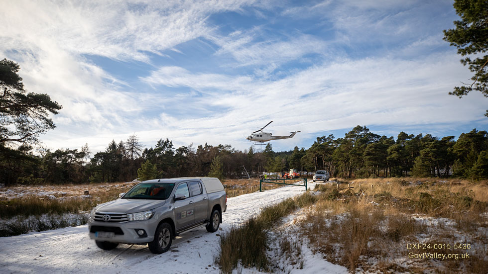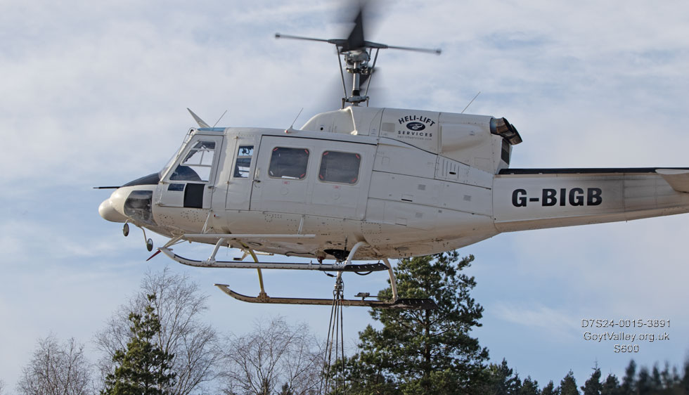 A low-loader fills the helicopter basket in seconds while the helicopter hovers. The low loader then immediately refills its bucket and waits for the return of the chopper. Makes a noise like my sewing machine. You can research this peak district topic online as the project has been a long time in development with other related important work. Like painting the Forth Bridge. Never ending. I have more images available which I shot from the far side of the Goyt River as I was too close for my big lens. Alright for Woodpeckers but not choppers.