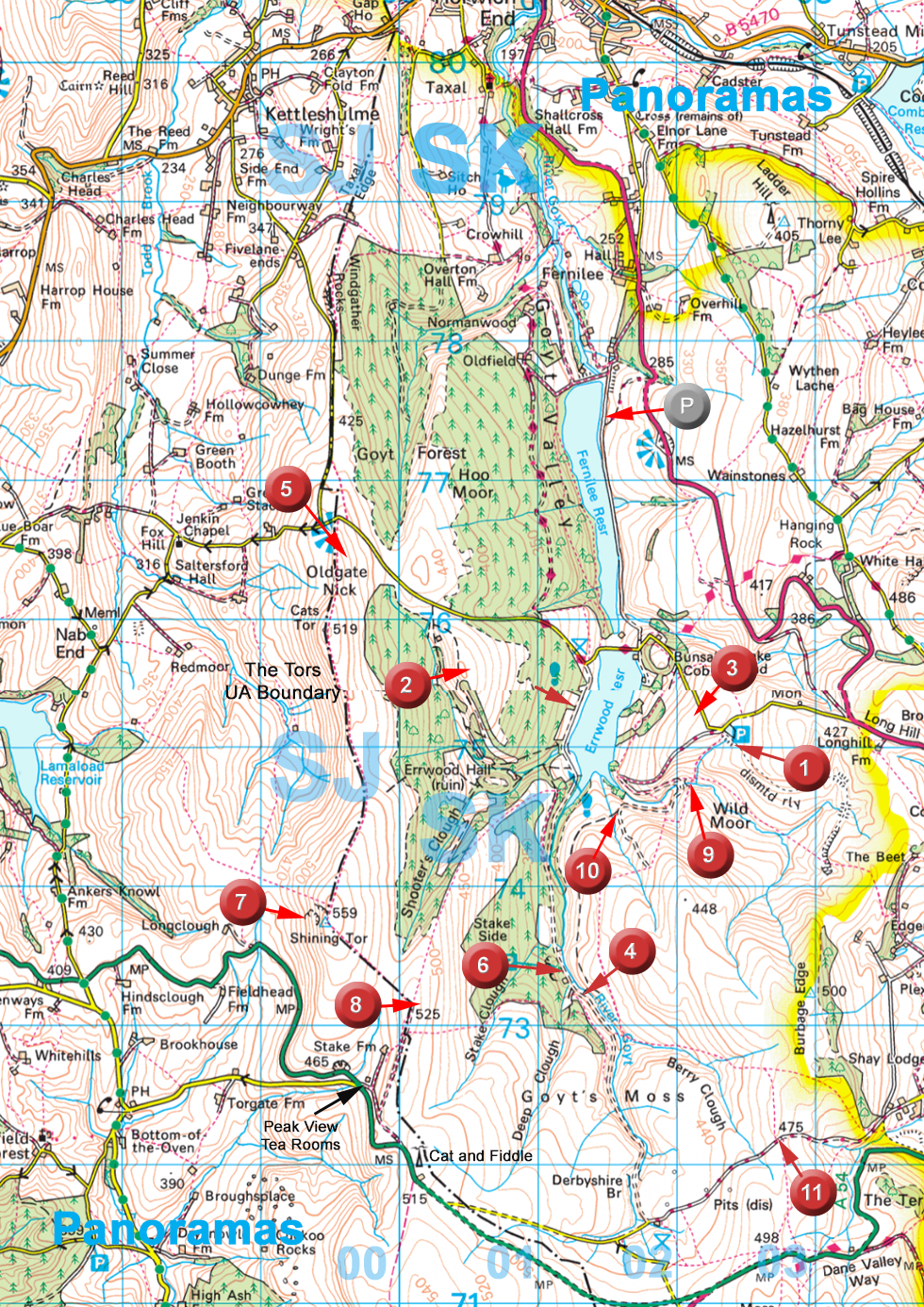 This page refers only to 360° panoramic views (videos). Icons with arrows indicate the approximate shooting location, which is then clarified in the text. Numbered red icons refer to panoramas now online. The red P icons refer to locations in active production. The grey P icons refer to planned panoramic views. As well as a number, each location has a name as that will be easier for me to recall in the future. By definition there will not be many panoramas. |