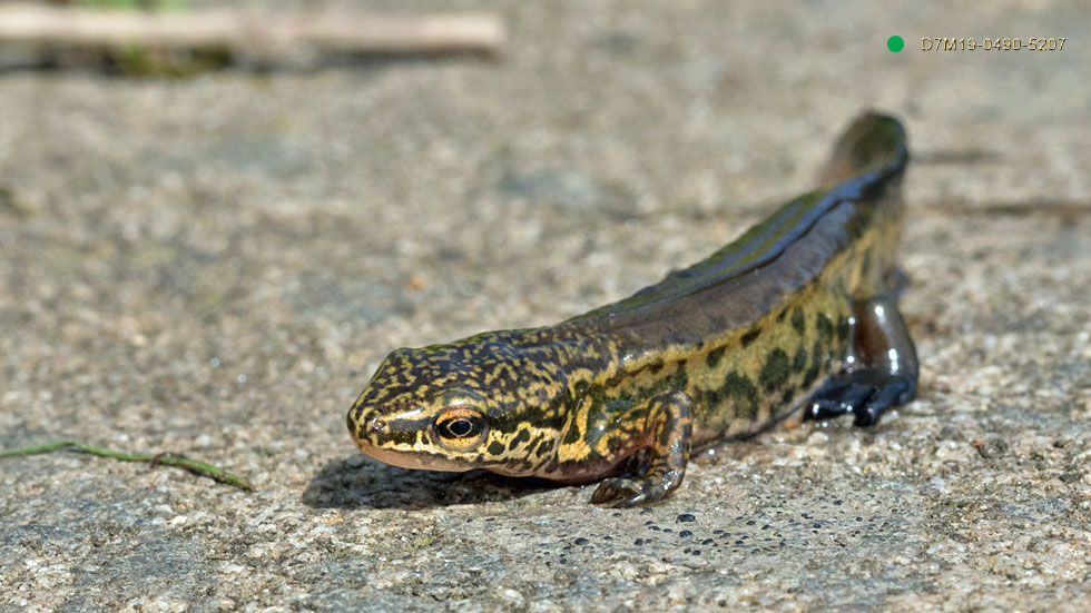 Newts tend to stay in water for the best part of the season and will be seen frequently (every fifteen minutes or so) rising to take a breath, which is when they are the most vulnerable. When they leave the water any old damp place will do, free from the risk of predation. |