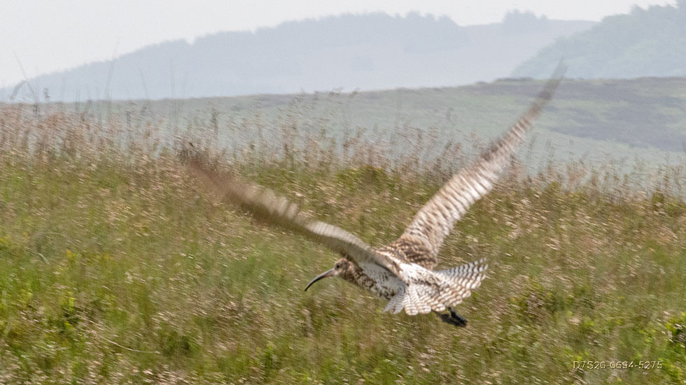 Bad as this shot is, I was lucky to get it. Just driving out of the Goyt, spotted it, stopped, grabbed my kit and fired off a few rounds. Dismal and misty day but it is a record, my only Curlew as far as I remember: June 17th. |