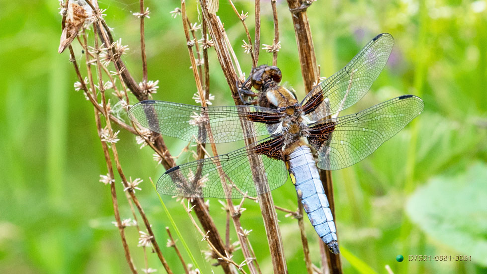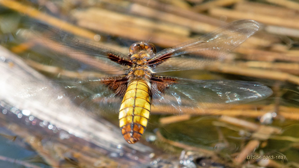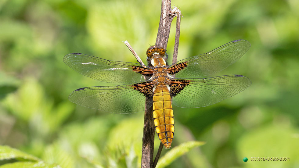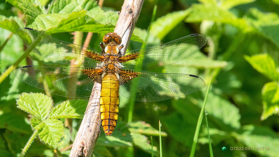 This is a rare opportunity to snap a male resting (probably feeding), away from the pond. Higher up in less dense surroundings, makes for a more presentable image. Sometimes getting very low down can help, if it is possible. But you need to be dressed for that and risk getting muddy. These are an early-in-the-season species along with the Four-spotted Chaser: June 17th.