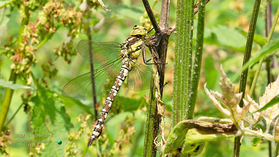 Same Dragonfly as above and seen from the rear for the benefit of enthusiasts as this puts species identity beyond doubt. The last two pairs of green dots are joined to form a band. Diagnostic. Absolutely delighted with this sighting: October 16th. 2022.