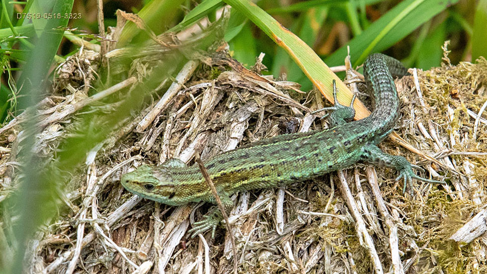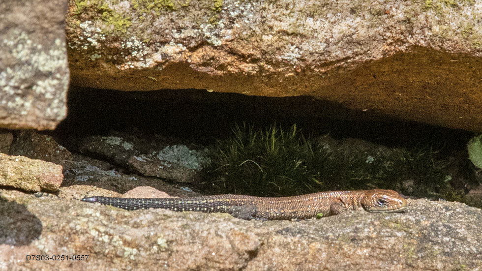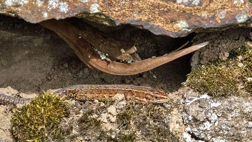I maintain a distribution-map [PDF] or distribution map [IMG] of Common Lizards (Zootoca vivipara] in the Goyt Valley. New images will usually only appear if Lizards are recorded in a new distinct part of the Goyt. That said, any I especially like will be slotted in with a suffix. I have only recorded five Common Lizards at the time of writing on the East side of the Goyt reservoirs.