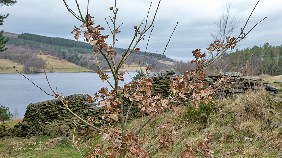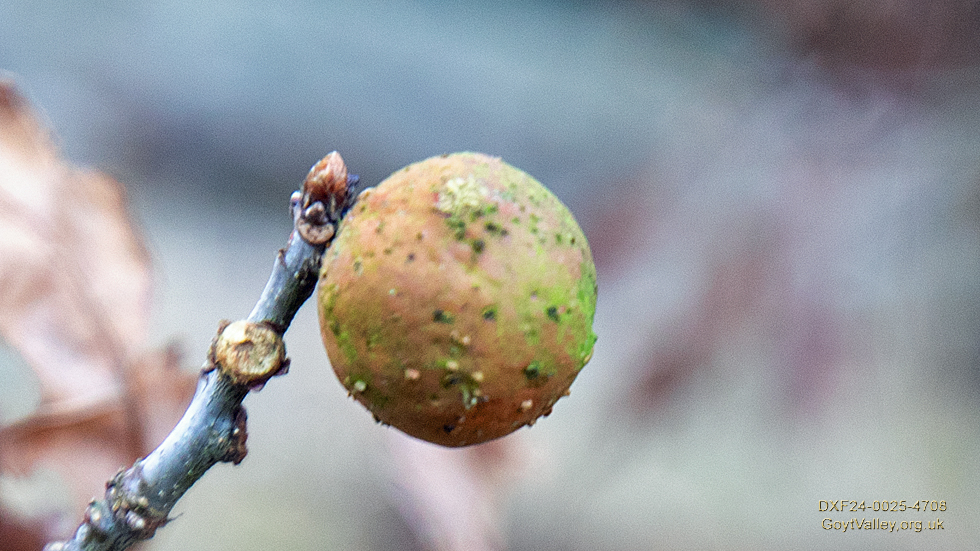 This is the actually 2 metre tall Oak which has a number of Galls attached. The route 6 map has been marked with a green arrow to denote the position of the tree, though I noted a small Oak with Galls on the roadside between Errwood Hall car park and the Packhorse Bridge. They can be found anywhere (SK 01597 74887 - Elev: 306): February 6th. 2024 |